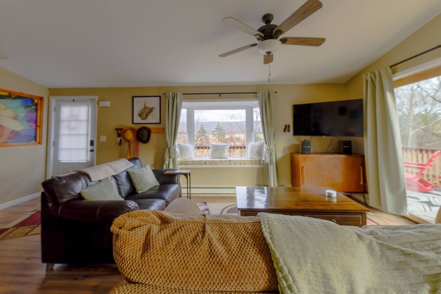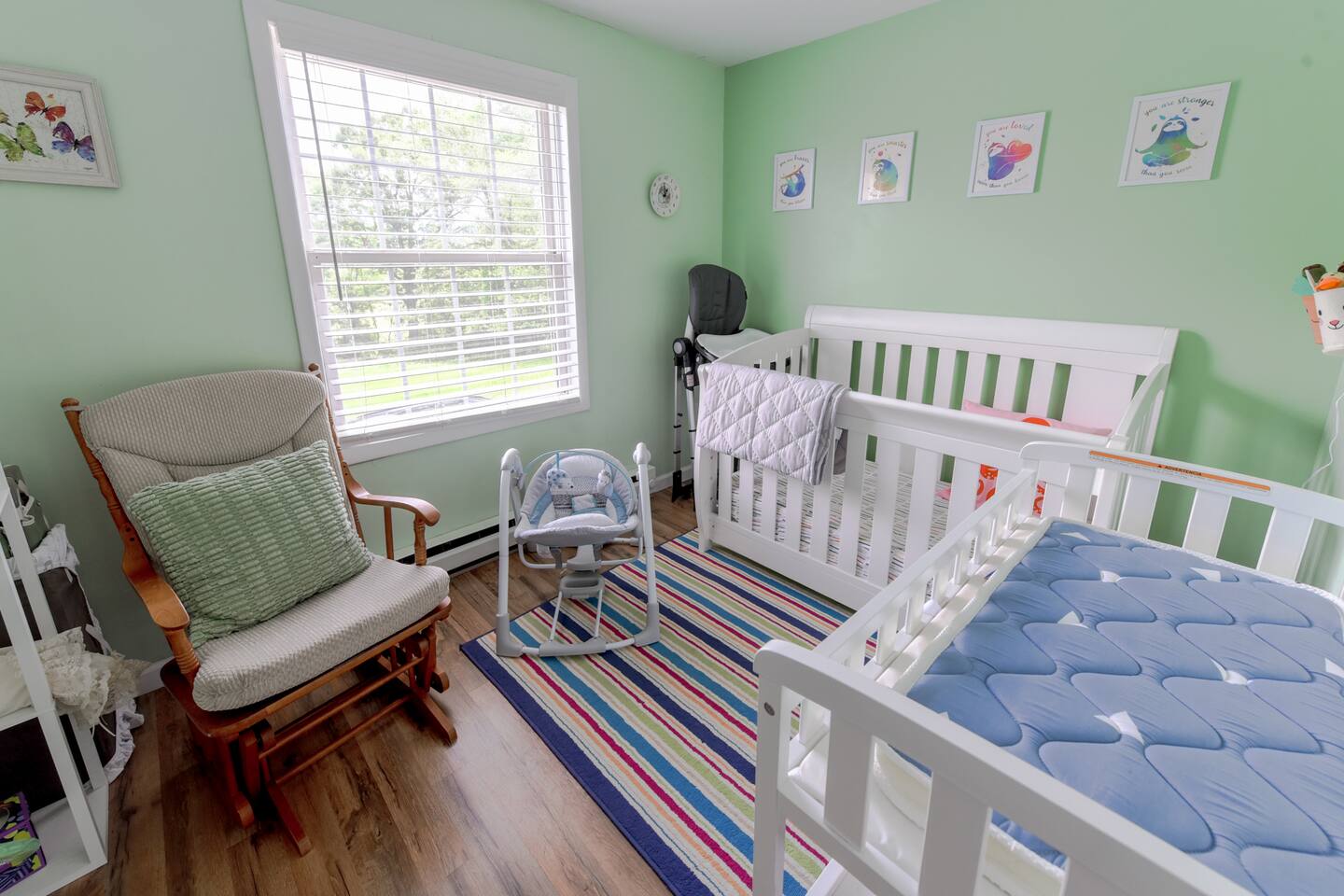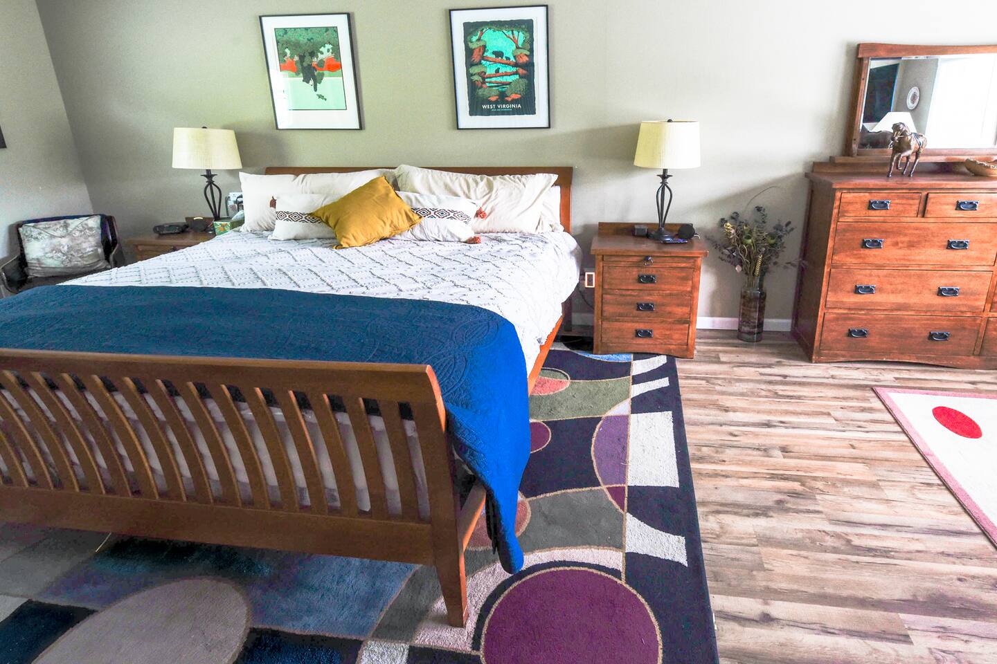 Escape to a scenic country lodge in Augusta WV for a relaxing getaway, or an adventure-filled vacation . Bring the family, it has three bedrooms, including a king bed plus nursery with crib! Whip up your favorite meals - modern kitchen with the essentials, cookware and dining utensils. Enjoy wrap-around deck with lovely views and a yard for outdoor games. Huge parking area. Paved roads from Rt 50. Enjoy nearby WV Wildlife Management Areas and the Potomac River. Includes upper level only.