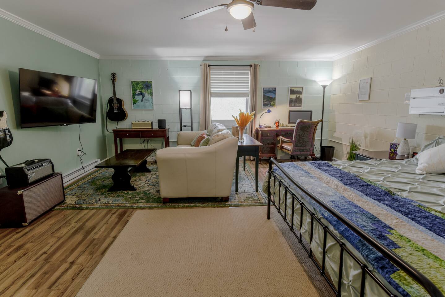 The entire upper level is available to guests. Lower level currently under renovation. There is ample parking outside.