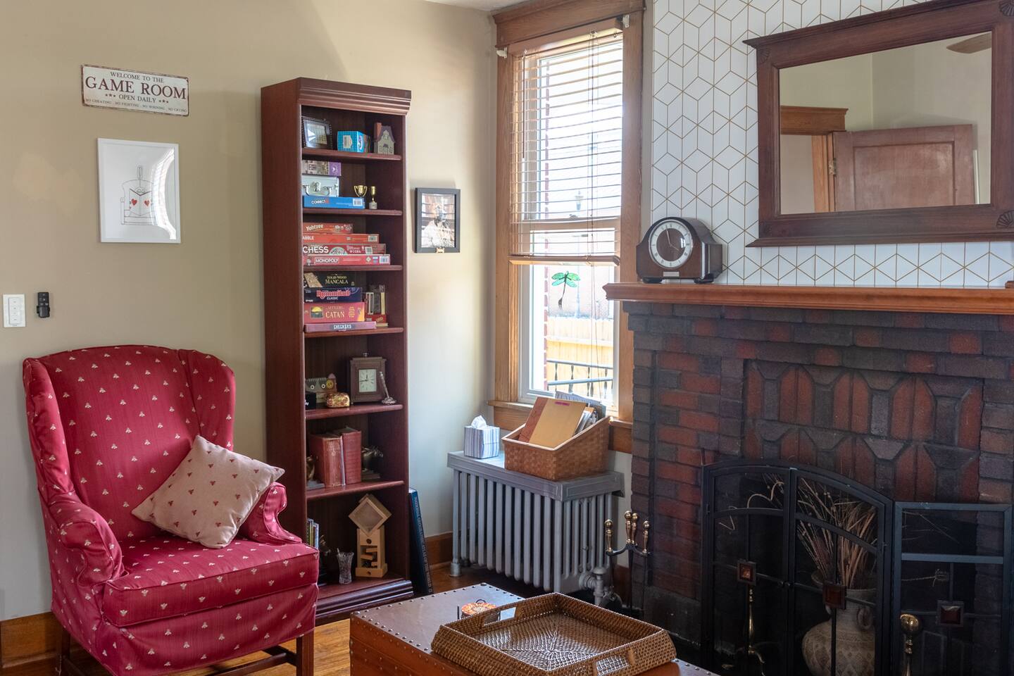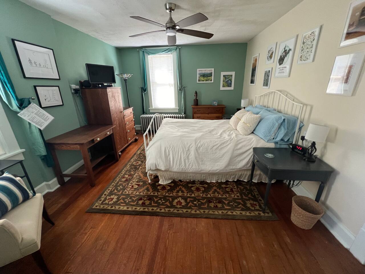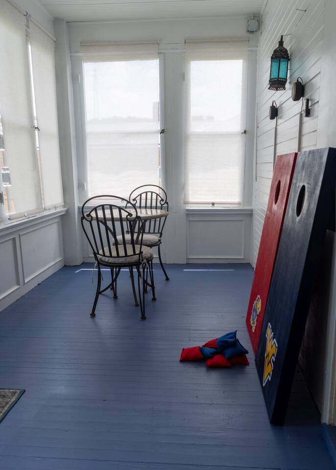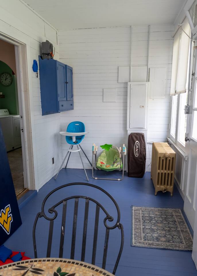 The Interior Space Strong WiFi (BreezeLine) Most rooms have multi-port outlets supporting all US plug and chargers. Motion sensitive lights on two of the porches and top and bottom of the inside stairs. All lights are LEG to save energy. House is cleaned with eco-friendly products and all supplied toiletries are eco-friendly. The house has window units for cooling and thermostatically controlled cast iron radiators for heat. Additional Amenities Linens for each bed, plus extra blankets if needed Towels and wash cloths Paper towels 2 rolls TP per bathroom We provide dishwasher detergent, dish soap, trash bags, tea towels, hand soap, laundry detergent, stain remover, dryer sheets. Kitchen: New 4 burner cooktop stove Stainless fridge with thru the door icemaker New dishwasher Toaster Hot water kettle Kitchen knife block set Ninja Coffee Machine Dishes & plates Silverware Glasses Wine Glasses Martini glasses and cocktail shakers Coffee mugs Tea cups and tea pots Cooking trays and bowls Serving bowls Cutting boards Selection of pots and pans Some canned goods, pasta, dry goods Herbs, spices, seasonings Tea, caffeinated and decaf coffee, various sweeteners, creamer sachets In closet ironing board Laundry Room: Washer Dryer DryerRack Dog bowls Detergent, stain remover, dryer sheets Game Room: Multiple games for all the family. Sofa Wing back chair Coffee table Fireplace Music Room: Vinyl turntable and selection of LPs Sofa Chair Coffee table Small musical instruments and a house guitar Dining Room Dining table & chairs for 6 More plates and bowls Napkins Table mats Window A/C unit Front porch: Chairs Table Back Porch: Chairs Table Baby Bath Pack’n’Play Crib Bouncy Chair High Chair Corn Holes & bags Blinds on all windows Bedroom 1: Queen bed Chair Luggage Rack Throws & Rugs TV Chest of drawers, chifforobe and closet Window A/C unit Bedroom 2: Queen Bed Side tables Chair Drawers Closet Iron & Ironing board Bedroom 3: Twin bed Drawers Closet Electronics support wall Office: Two desks Chair Bookshelf Closet Exterior Space: Charcoal Grill Seating for 6 Corn Hole Fully fenced back yard Local attractions: Potomac Eagle Scenic Railroad Rivergoat Outfitters – guided fishing trips Eagle Rock Fort Mill Ridge and Nathaniel Mountain Wildlife Management Areas Restaurants: Rt 50 Biscuits & Burgers (24 hours except Sundays) El Centro (best stocked bar in the area) Romney Coffee Station (dog friendly coffee shop) Wild Roots Café Italian Touch Romney Diner (cash only)